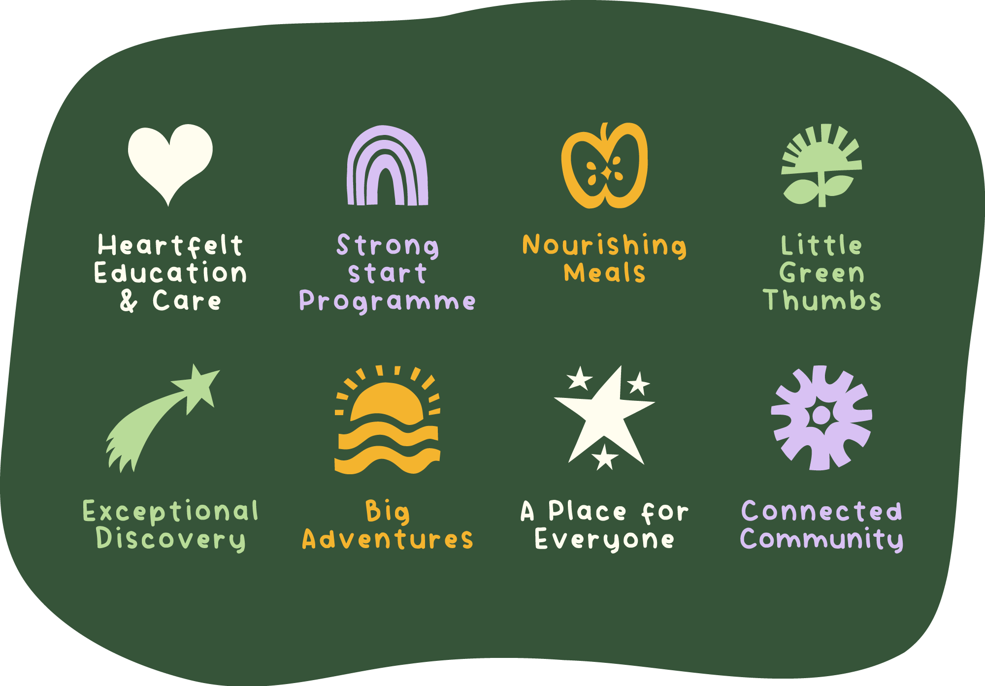 Nurture: Within our secure, friendly atmosphere, children develop a deep sense of belonging. We respect each child’s uniqueness, acknowledging their efforts as they develop the independence and trust needed to blossom.